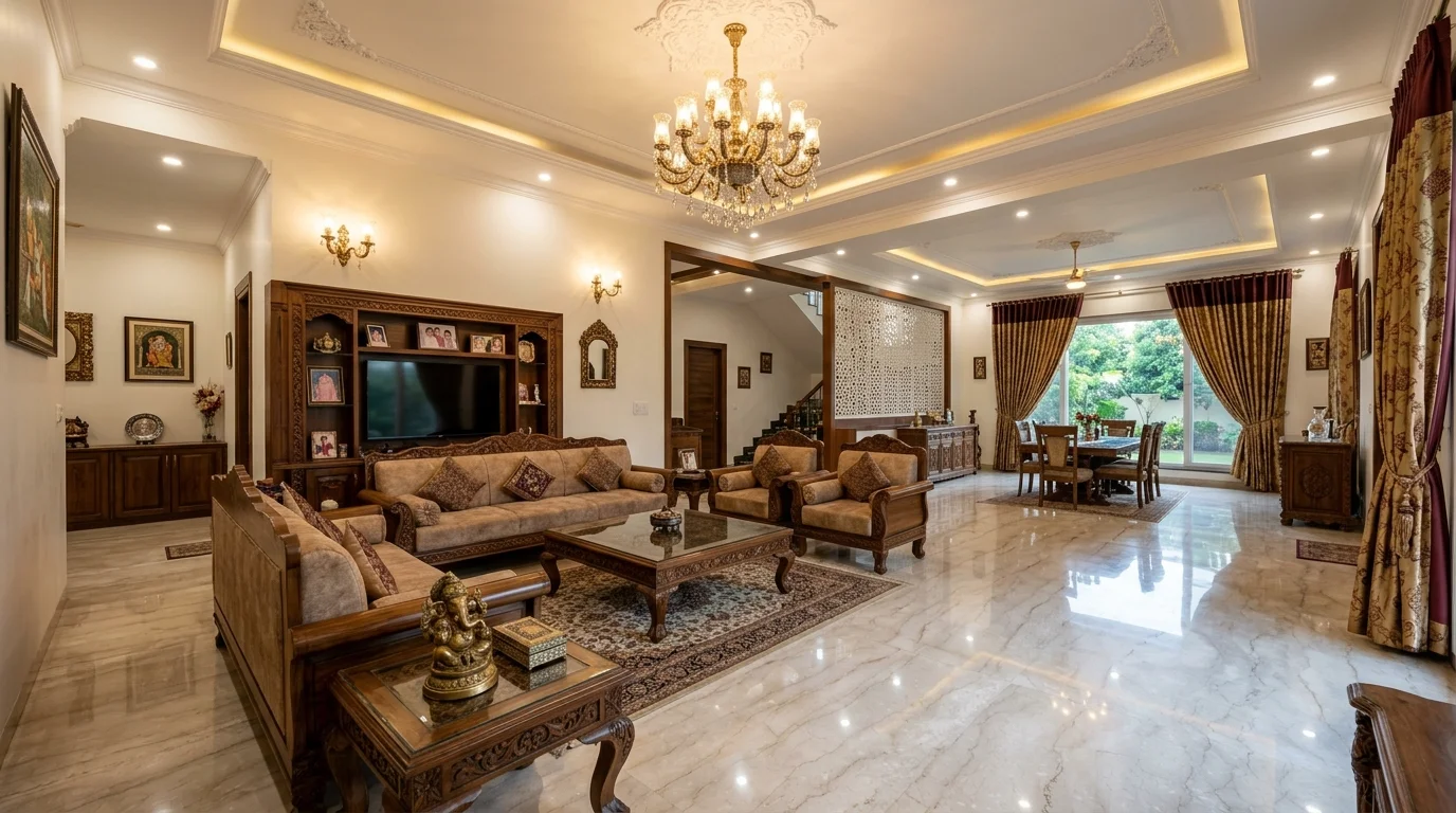 Esse ponto é importante para não reduzir a Índia a uma imagem de excesso visual. O que parece abundância, muitas vezes, é sistema. Cor, em muitos contextos indianos, não serve para suavizar a composição. Serve para tornar visível o que precisa permanecer legível no cotidiano. É por isso que a casa indiana, em várias regiões, pode ser intensa sem ser caótica. Há regra onde o olhar externo enxerga apenas exuberância.
