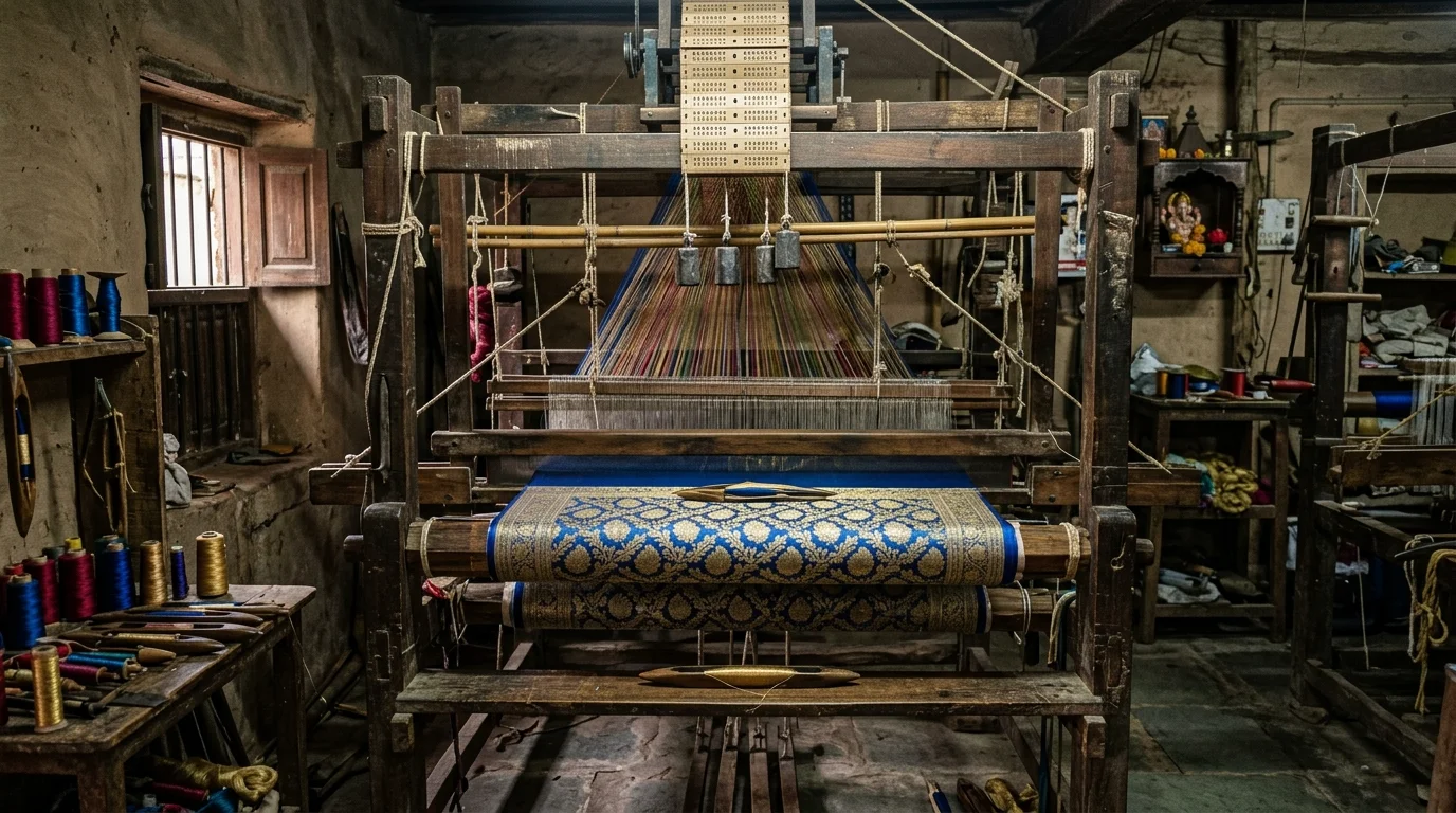 Mais continuidade do que ruptura. Os mogóis chegaram com um vocabulário estético próprio — geométrico, calígrafo, arquitetônico — mas encontraram tradições locais sólidas. O resultado foi síntese: o brocado Banarasi combina técnica local com padrões florais de influência persa e mogol. A Índia raramente apenas copiou o que recebeu. Ela absorveu e transformou.